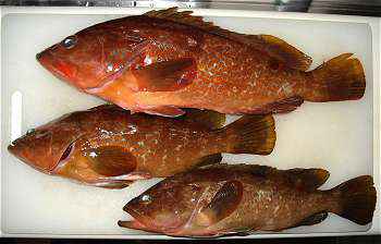 アコウ 40.5cm 32 32 30.5 の4匹、 ガシラ 2匹 |
