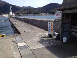 神子漁港 防波堤は低く釣りはしやすい。 駐車場も無料。 本日は水が澄んで海底が丸見え。 |