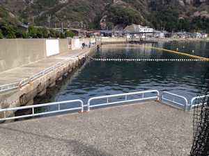 | 白木漁港 防波堤が非常に高く外向きは無理。 内向きの釣りスペースが少ない。 |