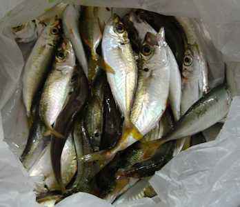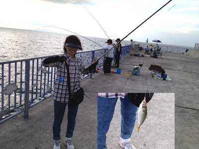 女房と二人 貝塚人口島で子アジ釣りを楽しんできた。往復6時間の距離。